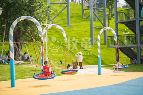 此時(shí)還處于哺乳期的嬰幼兒尚不能獨(dú)立活動(dòng),只能由家長(zhǎng)抱著到戶外散步,或在家長(zhǎng)引導(dǎo)下進(jìn)行學(xué)步訓(xùn)練。因此,牧童精心設(shè)計(jì)了一些能夠多方位防護(hù)的秋千,讓嬰幼兒也可以在家長(zhǎng)的陪護(hù)下,安全地體驗(yàn)一些感官方面的訓(xùn)練。