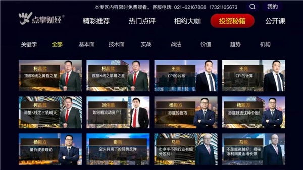 作為河北IPTV財(cái)經(jīng)頻道內(nèi)容提供方,點(diǎn)掌財(cái)經(jīng)是上海點(diǎn)掌文化科技股份有限公司打造的專業(yè)財(cái)經(jīng)品牌,也是國(guó)內(nèi)知名的社交金融平臺(tái)之一。作為國(guó)內(nèi)每日直播的財(cái)經(jīng)平臺(tái),點(diǎn)掌財(cái)經(jīng)內(nèi)容生產(chǎn)能力在專業(yè)財(cái)經(jīng)機(jī)構(gòu)中名列前茅。與正襟危坐的傳統(tǒng)風(fēng)格不同,點(diǎn)掌財(cái)經(jīng)的嘉賓點(diǎn)評(píng)犀利,特色鮮明。由股市神甫之稱的財(cái)經(jīng)界知名主持人左安龍奠基創(chuàng)立,財(cái)經(jīng)名家錢啟敏、竇維德坐鎮(zhèn), 更有新晉預(yù)言帝毛利哥、千鶴助陣,點(diǎn)掌財(cái)經(jīng)匯聚了國(guó)內(nèi)數(shù)百名財(cái)經(jīng)名家組成“磚家團(tuán)”,共同打造“與靠譜的人一起聊股票”的投資者互動(dòng)平臺(tái)。