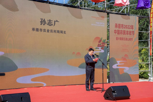 此次盛會由中共承德市委、承德市人民政府主辦,中共承德市委宣傳部、承德市農(nóng)業(yè)農(nóng)村局協(xié)辦,中共興隆縣委、興隆縣人民政府承辦。中共承德市委副書記郭旭濤,中共興隆縣委副書記、縣長尚曉輝,承德市農(nóng)業(yè)農(nóng)村局局長孫志廣,承德市鄉(xiāng)村振興局黨組書記、局長劉海麗,中共承德市委宣傳部二級調(diào)研員張東偉,承德市市場監(jiān)督管理局副局長張進宇,中共興隆縣委常委、宣傳部部長趙輝,興隆縣人民政府副縣長孟慶華等領(lǐng)導同志以及市直各有關(guān)部門和承德市八縣四區(qū)農(nóng)業(yè)農(nóng)村局的主要負責同志出席了本次活動。恰逢祖國73歲生日來臨之際,承德市社會各界凝心聚力迎接黨的二十大勝利召開,值此盛況大家相聚于”山楂之鄉(xiāng)”興隆縣,共同譜寫一首紅色贊歌將豐收的喜悅傳遞。