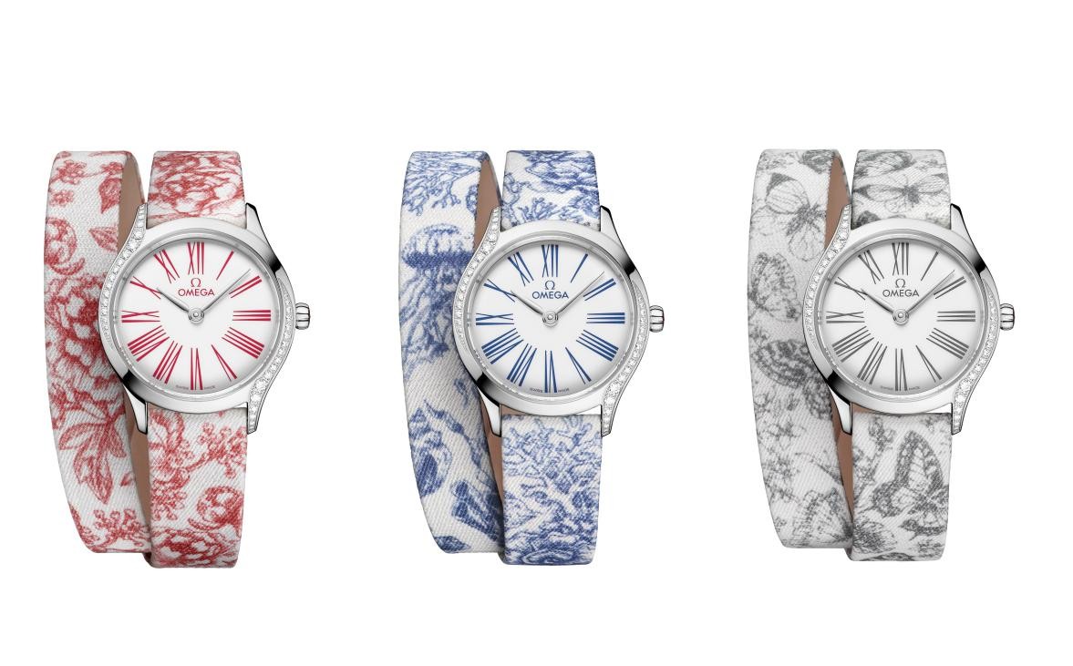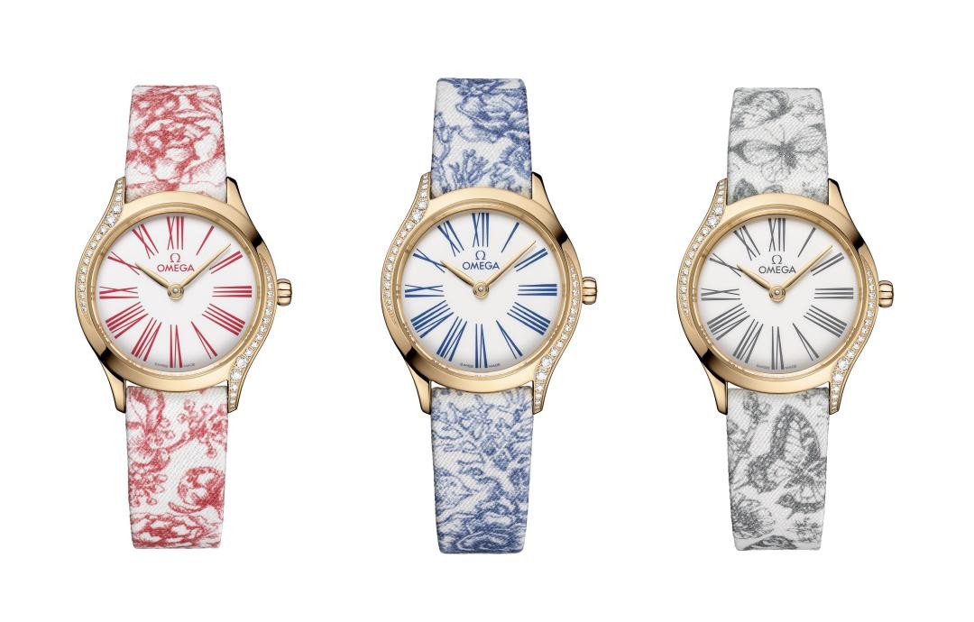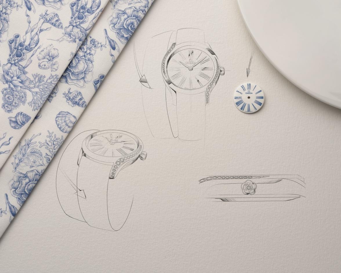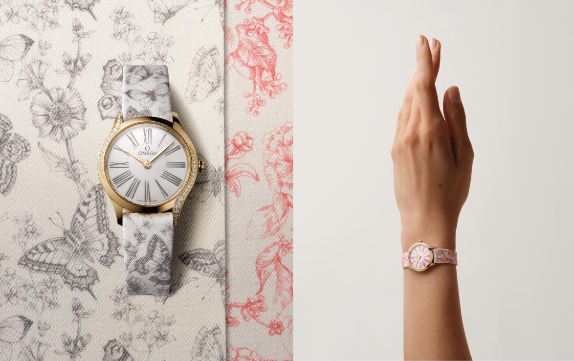 歐米茄從歷史上運(yùn)用在壁毯和瓷器上的茹伊印花圖案中汲取靈感,設(shè)計并推出三款風(fēng)格獨(dú)特的“茹伊印花”表帶,每一款表帶的圖案均與歐米茄品牌基因息息相關(guān)。其中,藍(lán)色海洋元素致敬歐米茄與深海探索的深厚情緣,黑色蝴蝶圖案象征著歐米茄支持人類航空航天探索的傳奇歷史,紅色花卉圖案則彰顯品牌對保護(hù)地球家園的不竭熱忱。
