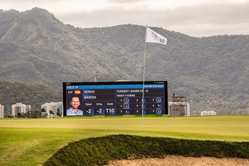 歐米茄鼎力支持奧運(yùn)會(huì)高爾夫賽事,并為賽場(chǎng)配備了獨(dú)家研發(fā)的高科技計(jì)時(shí)技術(shù),包括在特定發(fā)球臺(tái)地面設(shè)置的記分板。每塊記分板都配有雷達(dá)測(cè)量系統(tǒng),當(dāng)球手開(kāi)球后,記分板將捕捉即時(shí)信息并展示給觀眾。除了球員姓名和當(dāng)前成績(jī)外,記分板還將實(shí)時(shí)顯示擊球速度、預(yù)估距離和擊球高度等數(shù)據(jù)。