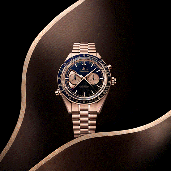 品牌發(fā)展歷史中所參與的這些事件極為重要,歐米茄以技術(shù)突破創(chuàng)新來予以紀(jì)念,用料也極為奢華,表殼、表鏈用18K Sedna金不說,機(jī)芯夾板同樣使用18K金。