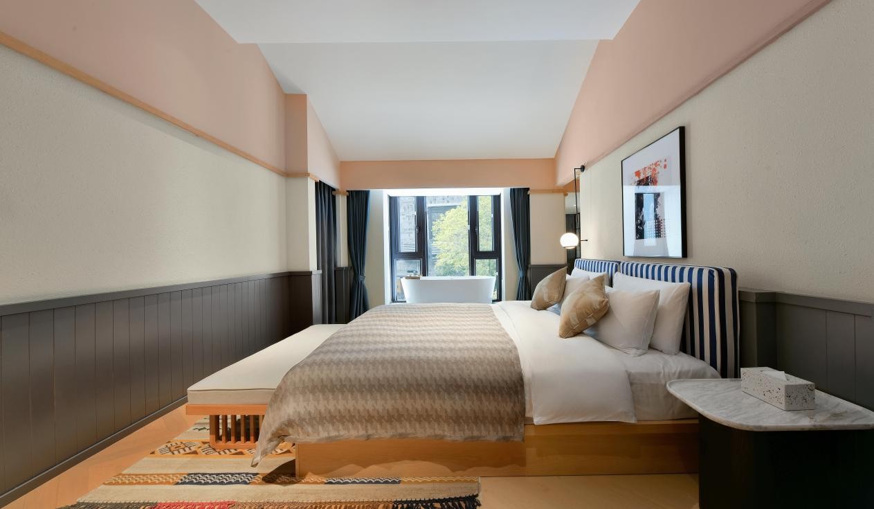 “兩堤花柳全依水,一路樓臺直到山”,有“水上蓬萊”美名的揚州瘦西湖,景致蘊含著江南的秀雅與北方的雄偉。揚州瘦西湖畔花間堂·新潮里便坐落于毗鄰瘦西湖的寶藏地點——虹橋坊強勢核心商圈內(nèi),酒店地處大虹橋路北側(cè),瘦西湖路西側(cè),步行至繁華的文昌閣商圈也僅需900米。酒店名之“新潮”二字,呼應(yīng)了虹橋坊老城商業(yè)街區(qū)潮流地標的絕佳位置,享盡時尚地標的摩登購物之樂,同時亦能從容體驗瘦西湖景致之趣。酒店位置造訪徐園、四橋煙雨樓、小金山、五亭橋等瘦西湖必游景點皆十分便捷,隔岸與24景之長堤春柳遙相對望。下榻于此,沉浸在六朝勝地的文化敘事間,褪去了城市喧囂束縛,靜享花間生活美好。酒店共設(shè)101間客房,客房的詩意命名由瘦西湖最為著名的24橋景汲取靈感,創(chuàng)想為展現(xiàn)房型特色與景致的雅名。無論是選擇擁有玻璃天窗,享受仰望星空的“幾靜”房、可于露臺觀覽彩云映照于湖面的景觀房“攬湖光”房,或可縱覽湖面夕陽的“斜日”房,皆讓來客全然放松地體驗令人神馳的碧湖雅韻。特別推薦親子度假、自然人文探索的客群前往體驗。