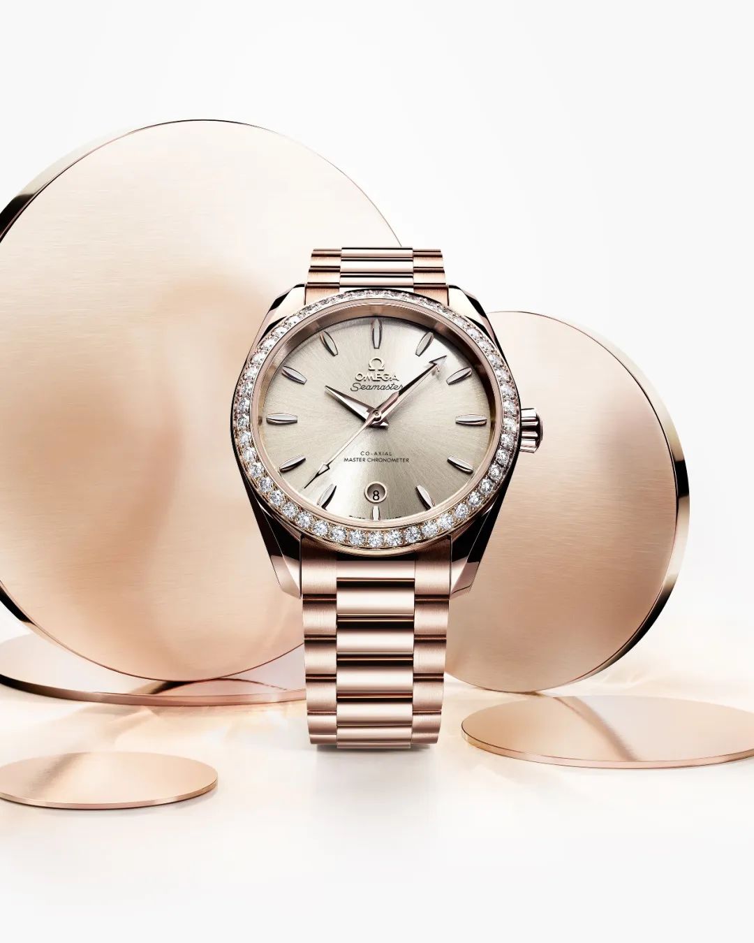 Sedna金和Moonshine金都是歐米茄獨(dú)家研發(fā)的特殊貴金屬合金,賦予腕表獨(dú)特的色調(diào)且不易褪色。Sedna金由金、銅和鈀三種金屬元素熔合而成,熾烈的玫瑰紅色澤在某種程度上得益于銅的適當(dāng)比例,而鈀確保了色澤永恒持久。Moonshine金則是歐米茄2019年為慶祝人類首次成功登月50周年推出的全新材質(zhì),采用金、銅、銀和鈀的混合比例,打造出月光般的全新色調(diào),比傳統(tǒng)的黃金顏色更柔和復(fù)古,并且更耐腐蝕,色澤更持久穩(wěn)定。金的獨(dú)特光澤搭配彩色盤面,更加凸顯腕表的雅致。