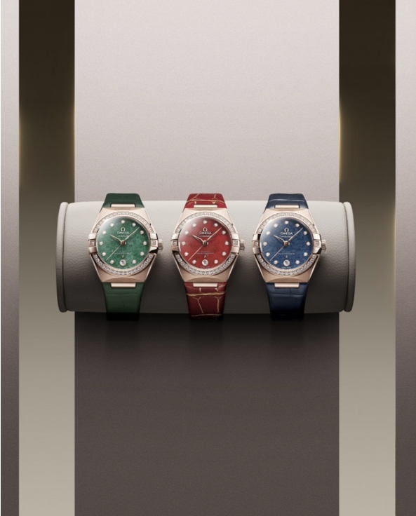 去年歐米茄為該系列推出了三枚29毫米的天然砂金石表盤腕表,紅色砂金石、綠色砂金石、和藍(lán)色砂金石為表盤增添豐富熱烈的色彩,吸引了大量時下年輕消費(fèi)群體的關(guān)注。歐米茄獨(dú)家的Sedna 18K金表殼材質(zhì),搭配表盤同色系的鱷魚皮表帶,令腕表具有極高的辨識度。