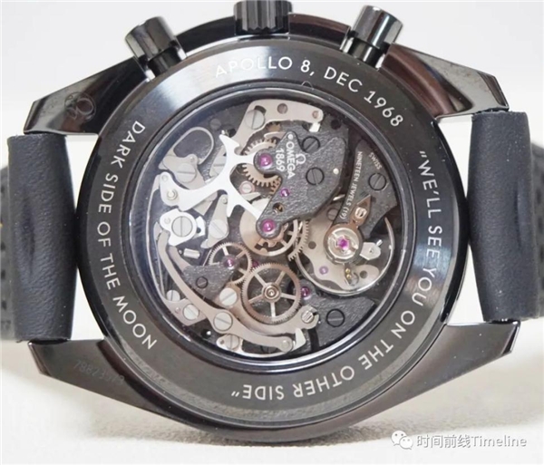 歐米茄超霸月之暗面“阿波羅8號”的盤面、機芯都進行了模仿月球表面的雕刻。