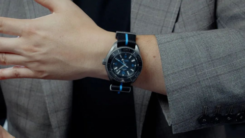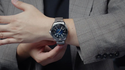 雖然工具屬性有點(diǎn)強(qiáng),但這枚腕表的顏值在線,比如我手上這枚黑色表圈配的是漸變藍(lán)色的盤面,Seamaster和Ultra  Deep字樣,以及秒針的尖端采用了非常醒目的亮藍(lán)色造型。