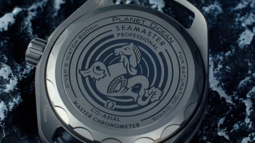 旋入式的表底蓋也采用了噴砂鈦合金材質(zhì),為了實(shí)現(xiàn)6000米的防水,這枚腕表沒有做背透設(shè)計(jì),但歐米茄非常貼心地采用了激光雕刻技術(shù),不僅雕出了漂亮海馬造型,而且還寫上了不同字樣,每行話都可以找到相對應(yīng)的解釋。