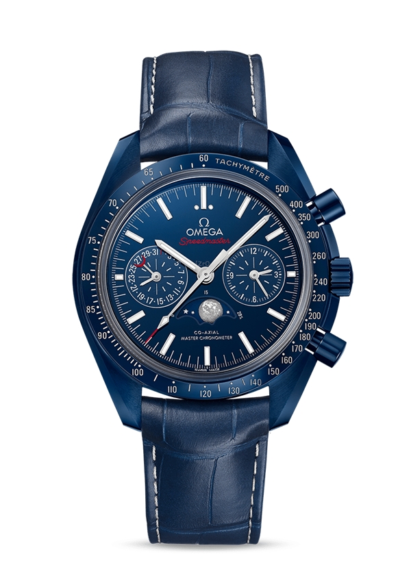 憑借豐富且專(zhuān)業(yè)的陶瓷制表工藝,歐米茄已生產(chǎn)出超過(guò)8種顏色的陶瓷。除了黑色陶瓷,品牌還打造過(guò)采用藍(lán)色陶瓷為表殼的超霸月相腕表,搭配藍(lán)色陶瓷表圈。表圈飾有由LiquidmetalTM打造的測(cè)速刻度。
