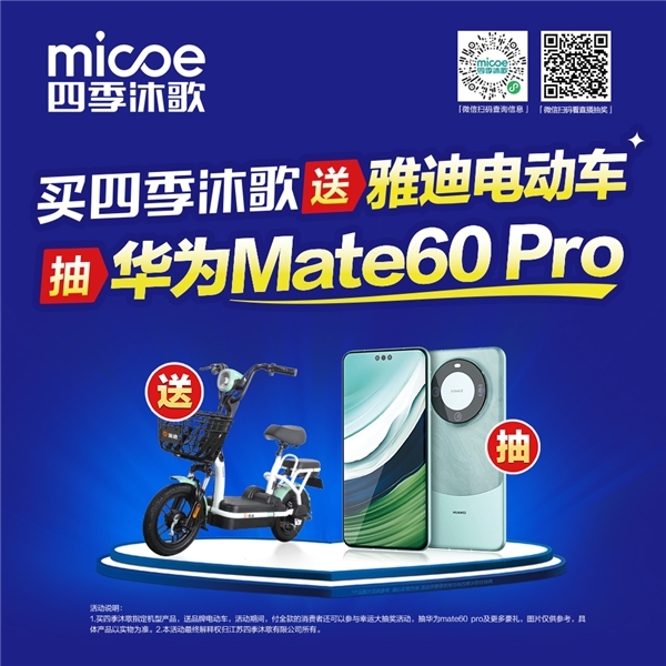 作為空氣能熱泵領(lǐng)軍品牌,四季沐歌憑借過硬的產(chǎn)品品質(zhì)和良好的市場口碑深受消費者青睞。為了更好迎接旺季市場不斷激增的消費需求,同時更好地回饋廣大消費者,四季沐歌發(fā)起了一場全品類、全渠道、全品牌的“買四季沐歌送雅迪電動車抽華為Mate60 Pro”全國聯(lián)動活動。
