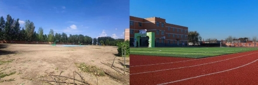 (圖左)操場(chǎng)改造前(圖右)操場(chǎng)改造后