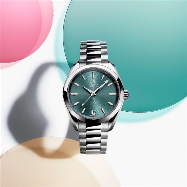 一方面,海馬系列手表設(shè)計(jì)簡(jiǎn)潔,對(duì)稱(chēng)的表盤(pán)、干凈的湖綠配色、以及合適的表殼直徑,都十分適合她搭配簡(jiǎn)單的T恤或者是現(xiàn)代裝。另外一方面,從細(xì)節(jié)來(lái)看,湖綠色表盤(pán)由黃銅制成,經(jīng)過(guò)漆面處理,由中央向四周呈現(xiàn)出太陽(yáng)射線的打磨效果。6點(diǎn)位設(shè)有日歷窗,指針、小時(shí)刻度和歐米茄品牌標(biāo)識(shí)均以?huà)伖獍咨?8K金制成。從整體再到細(xì)節(jié),我認(rèn)為這枚手表是十分適合現(xiàn)代都市女性的選擇。