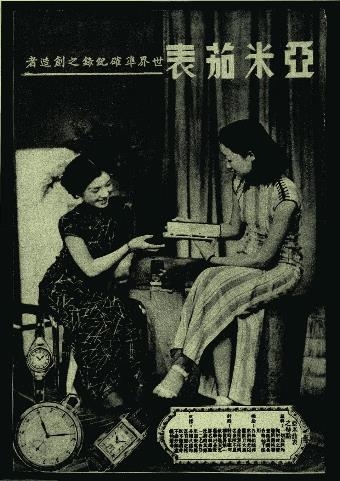 海報中的廣告正是女士手表,模特身穿旗袍,風情萬種,大方地欣賞著這塊精美的手表,也讓我們能從其中窺見當時上海的繁榮景象。
