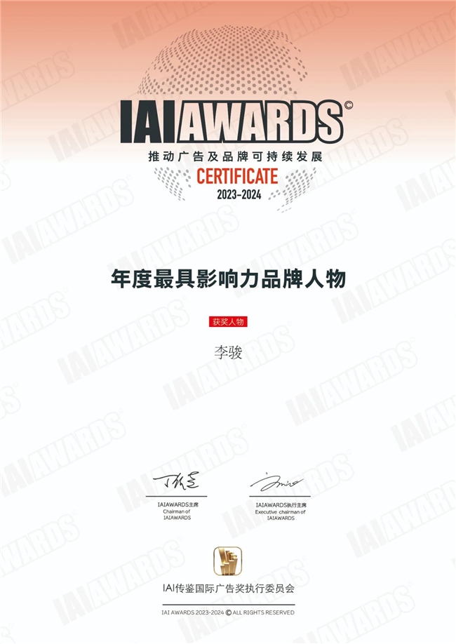 IAI傳鑒國際廣告獎是大中華區(qū)知名的綜合性廣告與品牌營銷評選賽事,由中國傳媒大學(xué)廣告學(xué)院、中國商務(wù)廣告協(xié)會等聯(lián)合創(chuàng)辦,是業(yè)界公認(rèn)的全面與權(quán)威的廣告與品牌營銷大獎,每年超過700家企業(yè)的3000+案例參與角逐。經(jīng)過88位終審評審后,在海內(nèi)外數(shù)百名權(quán)威專家、營銷精英的共同見證下,四季沐歌榮獲第24屆IAI傳鑒國際廣告獎,這既是社會各界對于四季沐歌24年來品牌實力的高度認(rèn)可,也充分證明了四季沐歌在空氣能產(chǎn)業(yè)上所取得的創(chuàng)新成果和亮眼成績。