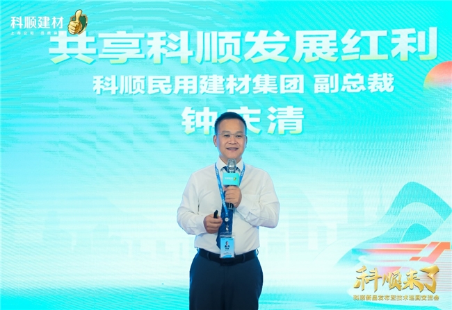 科順民建集團副總裁鐘慶清出席會議并發(fā)表致辭,鐘總結合當前市場環(huán)境提出了“順勢而為”的決策思路和扶商計劃,他表示:民建是當前科順集團戰(zhàn)略發(fā)展的重點,公司將通過深度資源整合與加大投入力度,憑借“技術科順、創(chuàng)新科順、服務科順”,與廣大合作伙伴攜手同行,合力創(chuàng)富。