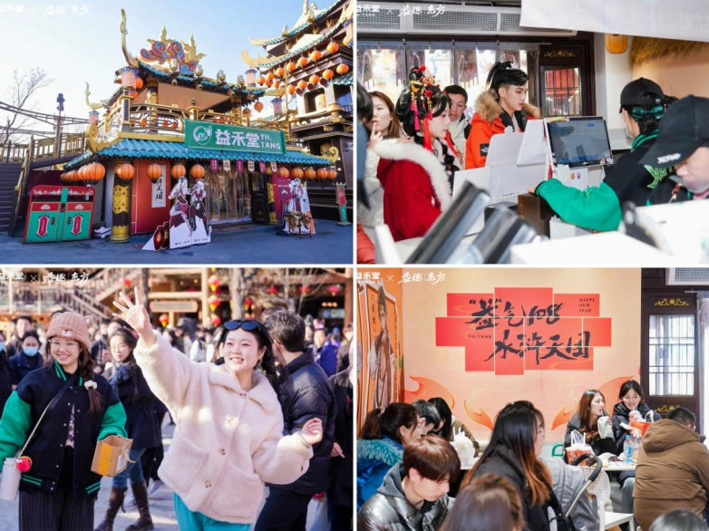 萬歲山武俠城內(nèi),“好漢”們玩游戲,集印章,兌換益禾堂“108水滸天團(tuán)”聯(lián)名周邊,大朋友、小朋友齊上陣,玩得好不過癮。“我小時候就是水滸迷,現(xiàn)在帶兒子來喝益禾堂,看水滸,怎么不算一種傳承呢?”,游客王先生表示。快閃店內(nèi),同樣也是紅紅火火、熱鬧非凡,大家拍照打卡、品嘗新品、速搜攻略,超濃年味藏不住。
