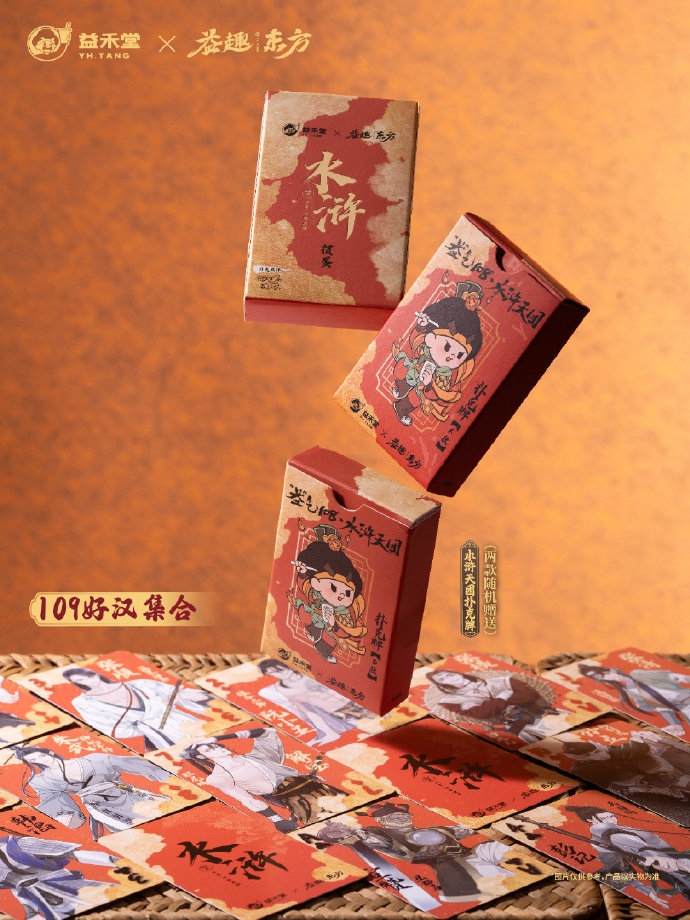 “第一次見有這么多物料的聯(lián)名”“干了這杯奶茶,益氣上梁山”“說走咱就走,拿上奶茶放煙花哇”……堂粉們不僅在社交平臺展開了激烈討論,還整理出益禾堂×水滸傳聯(lián)名攻略,收集“開好運(yùn)·水滸收藏卡”、“旺手氣·水滸撲克牌”和“全家福·水滸拼圖”,喝酒釀、打撲克、玩拼圖,過年聚會的活動統(tǒng)統(tǒng)提前安排上。