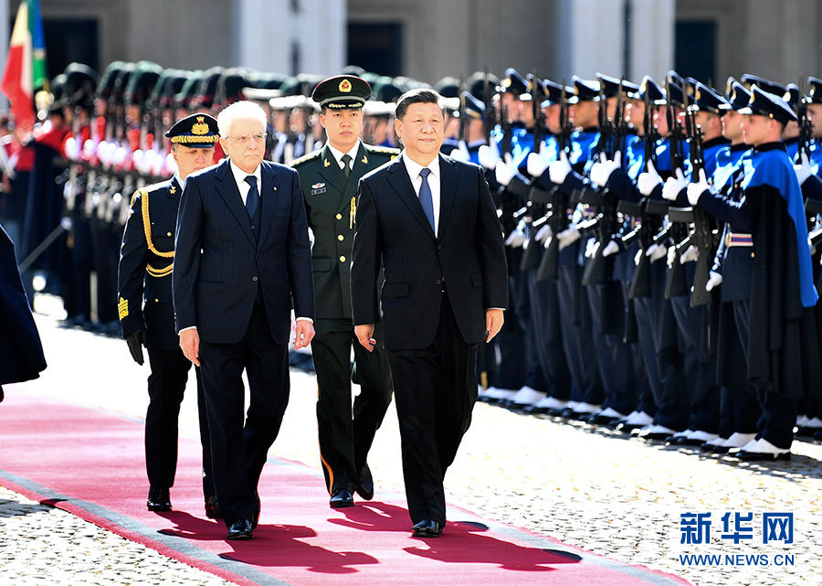 3月22日,國家主席習(xí)近平在羅馬同意大利總統(tǒng)馬塔雷拉舉行會談。會談前,馬塔雷拉總統(tǒng)為習(xí)近平舉行隆重歡迎儀式。 新華社記者 謝環(huán)馳 攝
