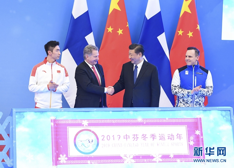 1月14日,國家主席習(xí)近平同芬蘭總統(tǒng)尼尼斯托在北京共同出席“2019中芬冬季運(yùn)動年”啟動儀式。 新華社記者申宏攝