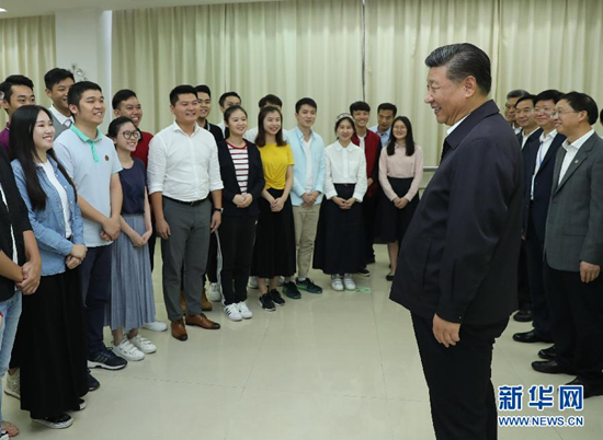 2018年10月22日至25日,中共中央總書記、國家主席、中央軍委主席習(xí)近平在廣東考察。這是10月24日下午,習(xí)近平在廣州考察暨南大學(xué)時同部分港澳臺同胞和海外僑胞學(xué)生交流。 新華社記者 鞠鵬攝