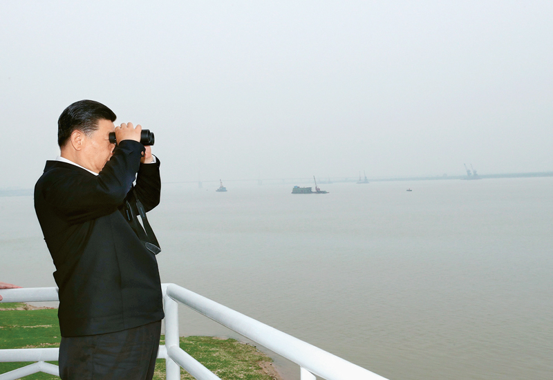 2018年4月26日下午,中共中央總書記、國家主席、中央軍委主席習(xí)近平在武漢主持召開深入推動長江經(jīng)濟帶發(fā)展座談會并發(fā)表重要講話。這是座談會前,習(xí)近平于25日上午乘船沿江察看兩岸生態(tài)環(huán)境和發(fā)展建設(shè)情況。 新華社記者 謝環(huán)馳/攝