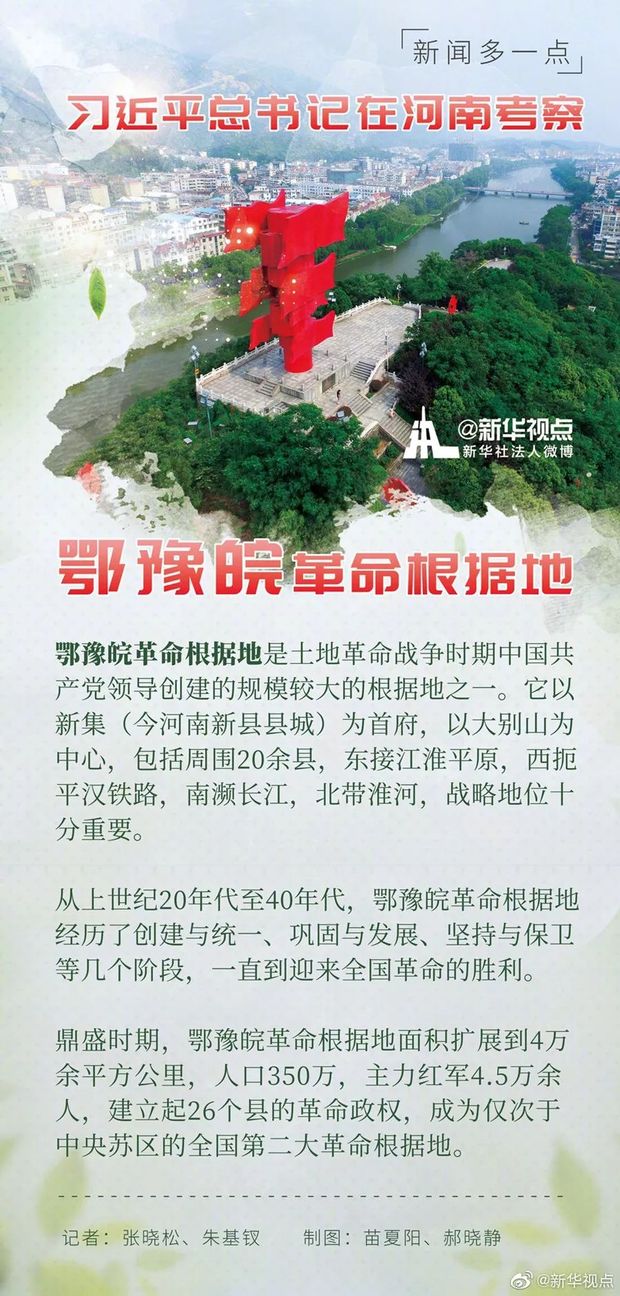 16日下午,習近平來到位于信陽市新縣的鄂豫皖蘇區(qū)首府烈士陵園,瞻仰革命烈士紀念碑,向革命先烈敬獻花籃。