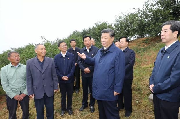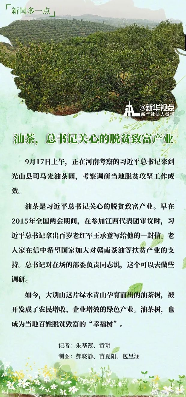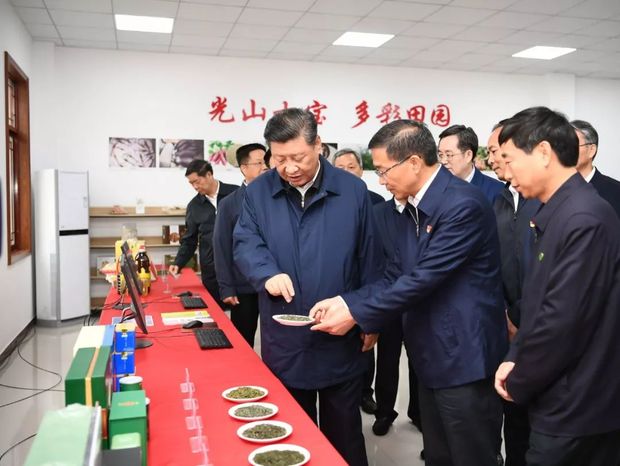 17日上午,習近平來到信陽市光山縣槐店鄉(xiāng)司馬光油茶園,實地察看油茶樹種植和掛果情況。