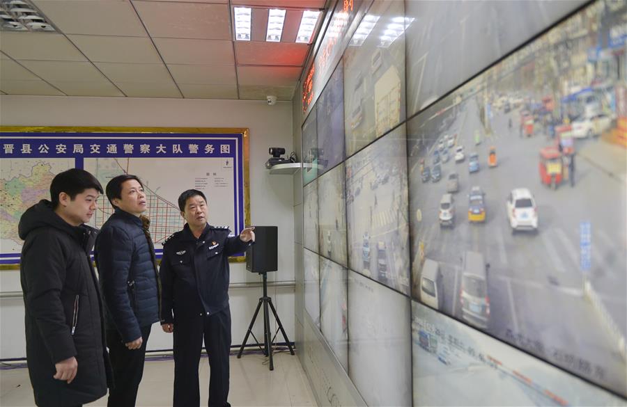 河北省寧晉縣紀(jì)檢干部借助公安機關(guān)交通監(jiān)控系統(tǒng),實時查看公車運行軌跡,嚴(yán)查公車私用問題(2018年12月29日攝)。 新華社記者 牟宇 攝