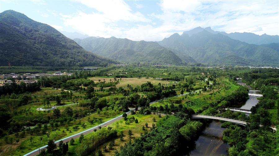 陜西省西安市長安區(qū)秦嶺違建別墅“群賢別業(yè)”拆除后建設(shè)的秦嶺和諧森林公園(2019年7月26日無人機照片)。新華社記者 劉瀟 攝