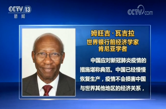 世界銀行前經(jīng)濟(jì)學(xué)家、肯尼亞學(xué)者姆旺吉·瓦吉拉表示,中國應(yīng)對新冠肺炎疫情的措施堪稱典范。中國已經(jīng)慢慢恢復(fù)生產(chǎn),疫情不會損害中國與世界其他地區(qū)的經(jīng)濟(jì)關(guān)系,不會影響到中國作為世界第二大經(jīng)濟(jì)體的地位。