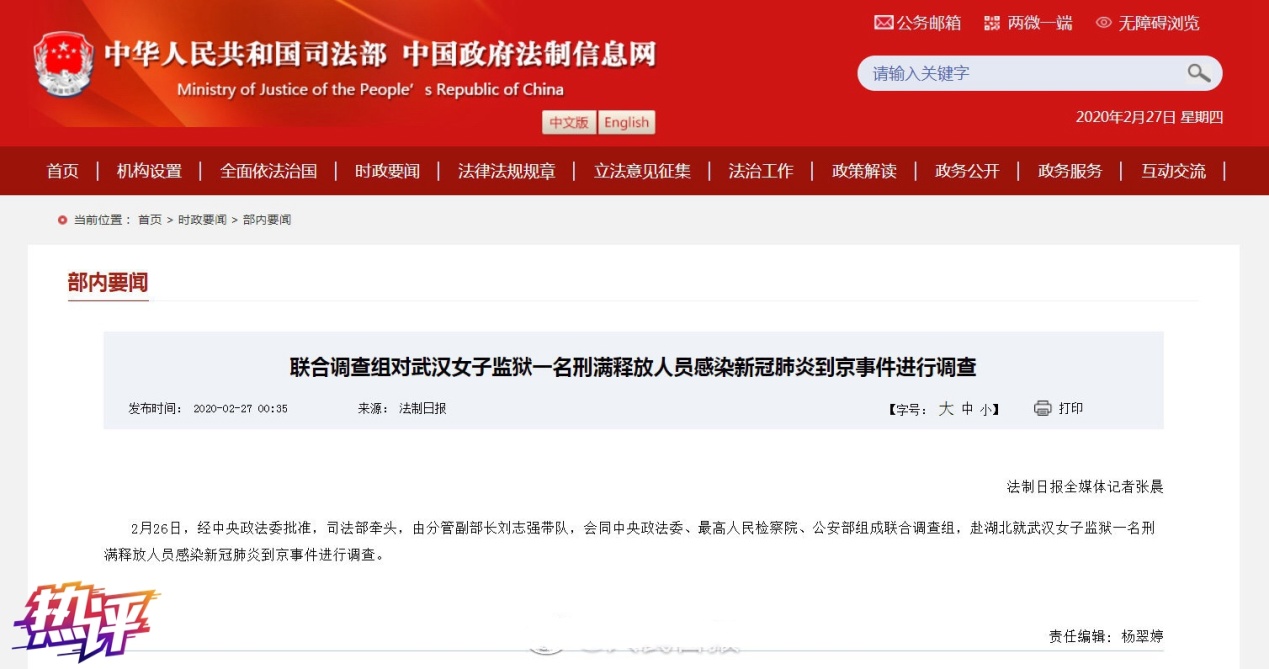 “要加強北京等重點省份防控工作,堅決阻斷各種可能的傳染源。”看到這句要求,不由得讓人想到這兩天一件極受關(guān)注的事情:一位在武漢的刑滿釋放人員,患新冠肺炎,卻又于近日離漢抵京。經(jīng)中央政法委批準、由司法部牽頭組成的聯(lián)合調(diào)查組已經(jīng)成立,湖北省、北京市也已分別成立了事件調(diào)查組。疫情防控,一時一刻不能放松,一絲一毫不能馬虎,要嚴防大堤潰于蟻穴。