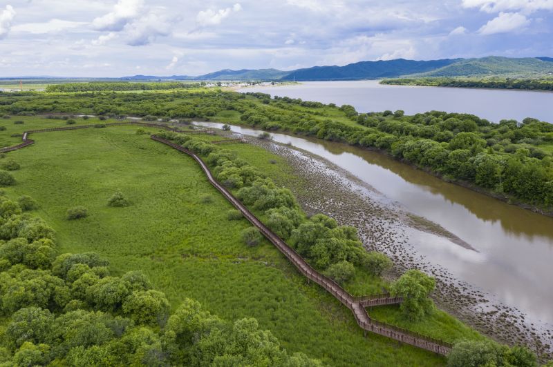 6月19日拍攝的烏蘇里江國家濕地公園夏日風(fēng)光(無人機(jī)照片)。