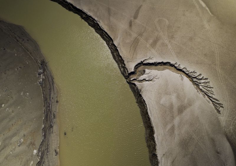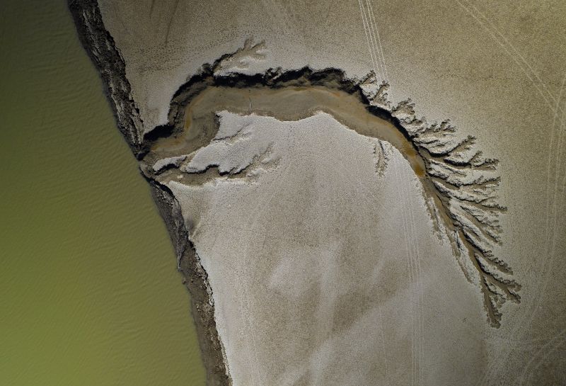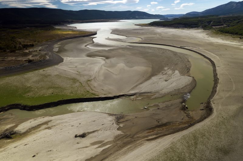 這是8月23日在西班牙納瓦拉拍攝的水位低下的耶薩水庫(kù)(無(wú)人機(jī)照片)。新華社/歐新