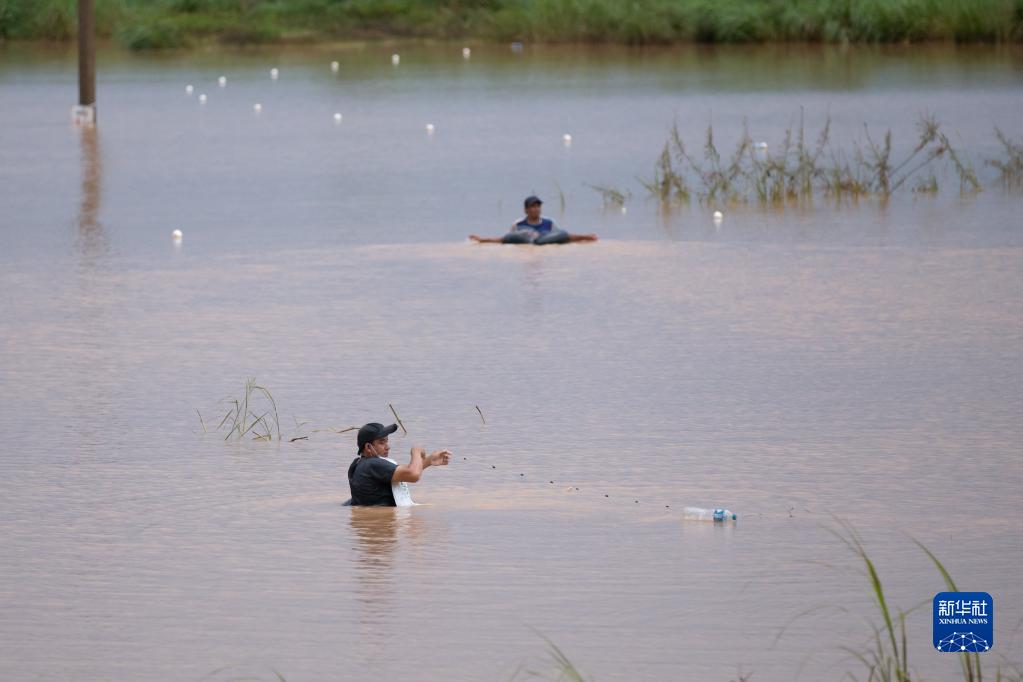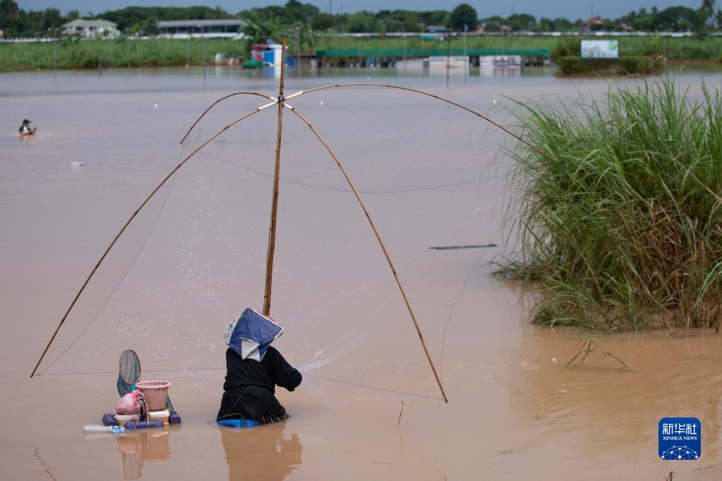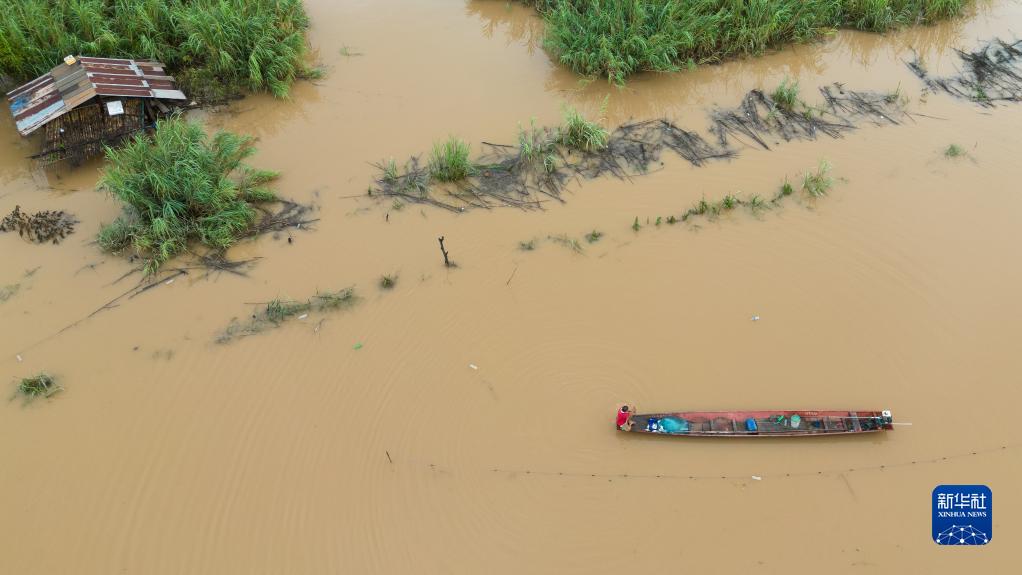 8月20日,在老撾萬象,漁民在漲水的湄公河上捕魚。新華社發(fā)(凱喬攝)