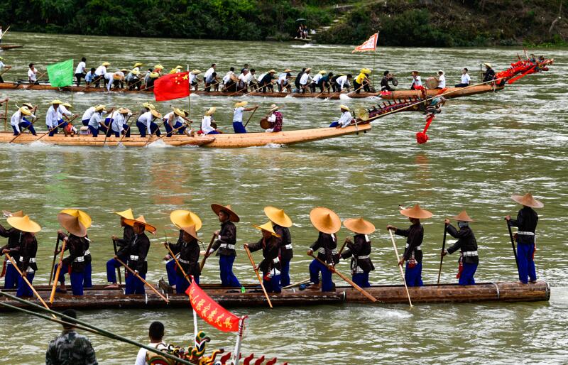 當(dāng)日,貴州省黔東南苗族侗族自治州臺江縣一年一度的苗族獨木龍舟節(jié)在該縣施洞鎮(zhèn)舉行。來自清水江沿岸的苗族群眾歡聚一堂,龍舟競渡,共度傳統(tǒng)民族節(jié)日。 新華社記者楊文斌攝