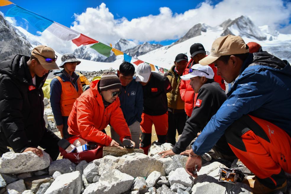 新華全媒+丨我國(guó)科考人員首次系統(tǒng)性采集卓奧友峰巖石樣品