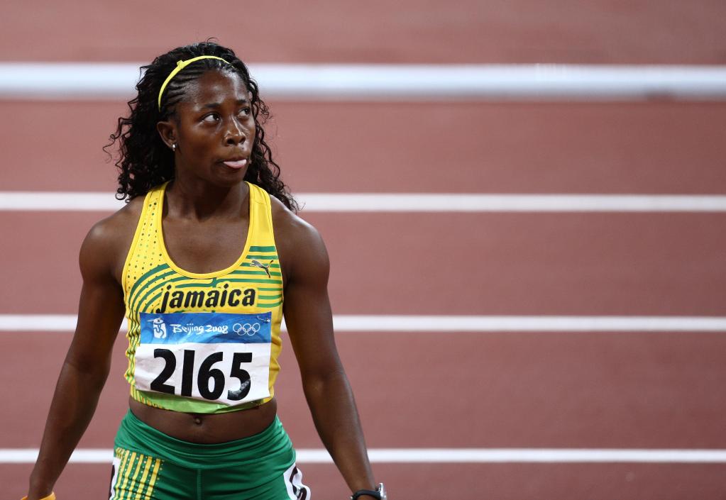 2008年8月16日,牙買加選手謝莉-安·弗雷澤在女子100米第二輪比賽后觀看記分牌。新華社記者陳建力攝