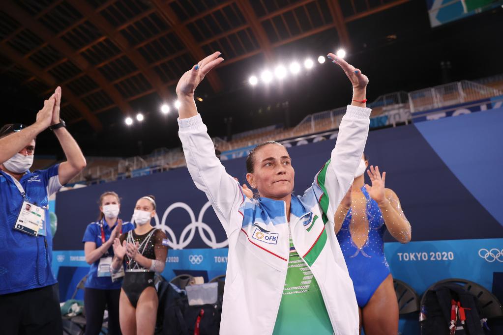 兒子病好之后,丘索維金娜依然選擇奮斗在賽場上,這一次支撐她繼續(xù)向前的,是對體操的熱愛。在東京的有明體育館,46歲的丘索維金娜站上自己深愛的體操賽場,與跟自己兒子年紀相仿的選手們同場競技。