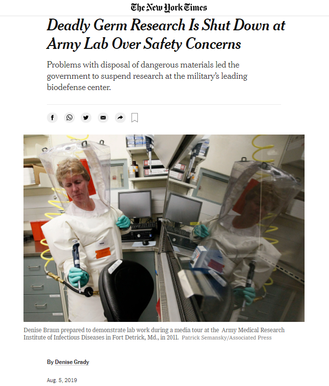 2019年8月5日,《紐約時(shí)報(bào)》曾報(bào)道美國(guó)疾控中心向德堡實(shí)驗(yàn)室發(fā)出了“停止和終止”令。