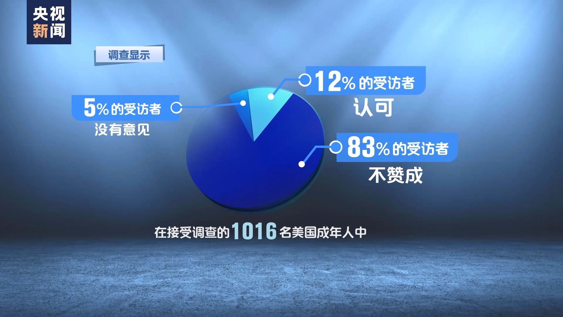 美國(guó)民眾同樣不滿國(guó)會(huì)的工作。27日,國(guó)際民意調(diào)查機(jī)構(gòu)蓋洛普公司發(fā)布的民調(diào)結(jié)果顯示,美國(guó)人對(duì)國(guó)會(huì)處理工作方式的認(rèn)可度已降至2015年以來(lái)的最低點(diǎn)。調(diào)查顯示,在接受調(diào)查的1016名美國(guó)成年人中,只有12%的受訪者認(rèn)可國(guó)會(huì)處理工作的方式,83%的受訪者表示不贊成國(guó)會(huì)處理工作的方式,另有5%的受訪者表示他們對(duì)此問(wèn)題沒(méi)有意見(jiàn)。