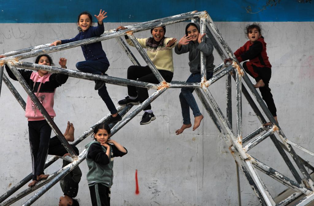 這是2月23日在加沙地帶中部邁加齊難民營(yíng)拍攝的兒童。新華社發(fā)(亞西爾·庫(kù)迪攝)