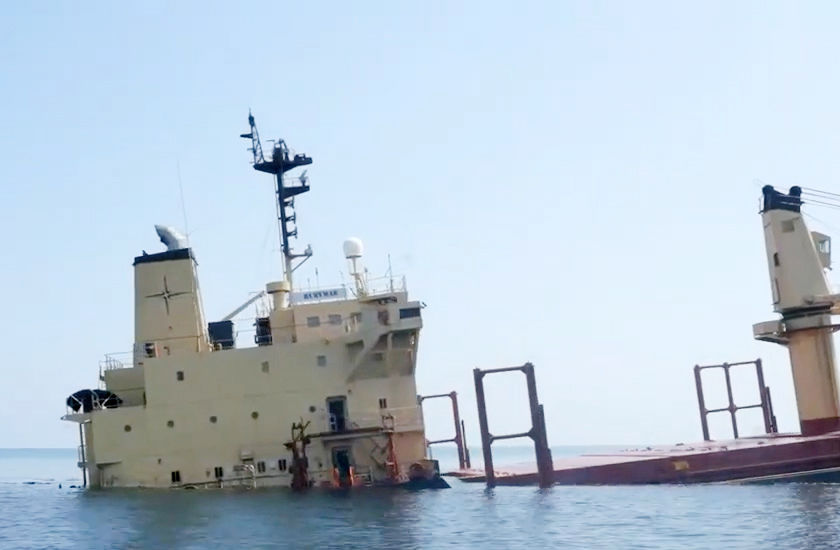 2月18日,胡塞武裝用導(dǎo)彈襲擊了在亞丁灣行駛的“魯比馬爾”號,致該船嚴(yán)重?fù)p壞,船員被迫撤離。在此后的12天里,這艘載有數(shù)萬噸化肥和大量燃油的貨輪一直錨泊在也門附近海域,并緩慢進水。泄漏的燃油在海面上形成長達30公里的油帶。3月1日,也門附近海域出現(xiàn)惡劣天氣,“魯比馬爾”號最終沉沒。