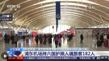 浦東機(jī)場(chǎng)海關(guān)旅檢處旅檢四科科長(zhǎng) 陳宇炯:我目前在浦東機(jī)場(chǎng)T2航站樓海關(guān)監(jiān)管區(qū),今年以來(lái),免簽“朋友圈”擴(kuò)容,3月14日是我國(guó)對(duì)瑞士,愛(ài)爾蘭,匈牙利,奧地利,比利時(shí),盧森堡六國(guó)持普通護(hù)照人員施行免簽政策的第一天,同時(shí)航班增量、航線增加等多項(xiàng)利好政策疊加,出入境旅客量一直在高位運(yùn)行,尤其是免簽政策,現(xiàn)場(chǎng)最直觀的感受就是出入境旅客中外國(guó)人的比例明顯上升了,外國(guó)人更愿意來(lái)中國(guó)經(jīng)商、旅游。