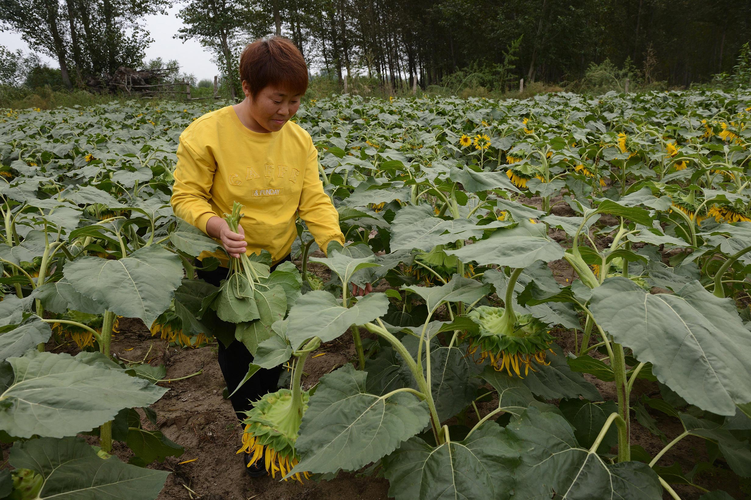 ▲2020年9月14日,內(nèi)蒙古通遼,科爾沁沙地腹地居民春梅在照看自家的農(nóng)作物。