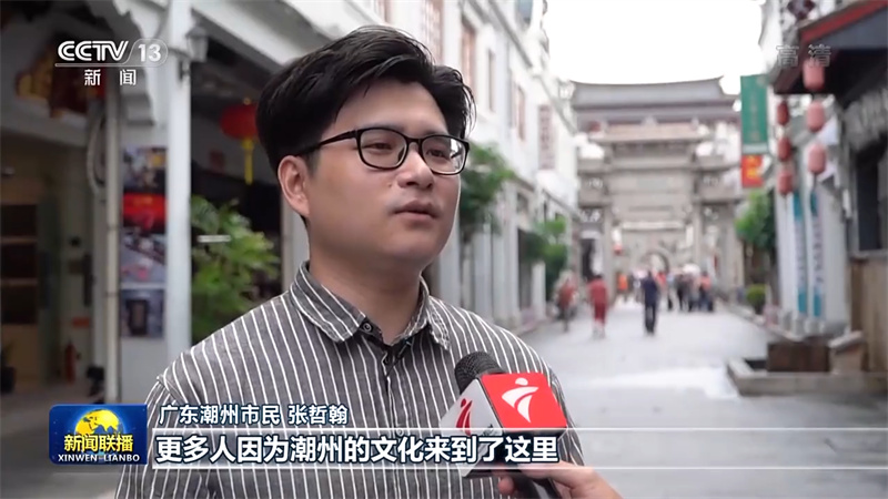 廣東潮州市民 張哲翰:每走幾步就有一項(xiàng)非遺工藝,每走幾里路就有一處名勝古跡,另外我也看到了這座城市,近兩年煥發(fā)出來(lái)的新活力,更多人因?yàn)槌敝莸奈幕瘉?lái)到了這里,作為潮州人我感到由衷高興和自豪。