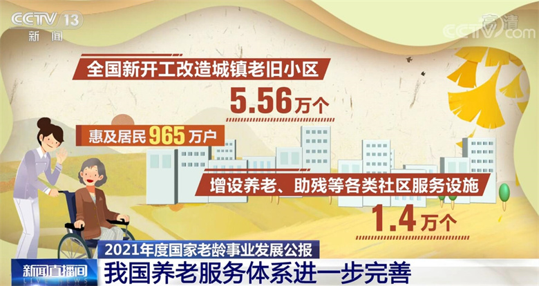 央視網(wǎng)消息:國家衛(wèi)生健康委、全國老齡辦近日發(fā)布《2021年度國家老齡事業(yè)發(fā)展公報(bào)》,公報(bào)顯示,截至2021年末,全國60歲及以上老年人口26736萬人,占總?cè)丝诘?8.9%。公報(bào)顯示,2021年,我國養(yǎng)老服務(wù)體系進(jìn)一步完善,養(yǎng)老服務(wù)供給能力不斷增強(qiáng)。