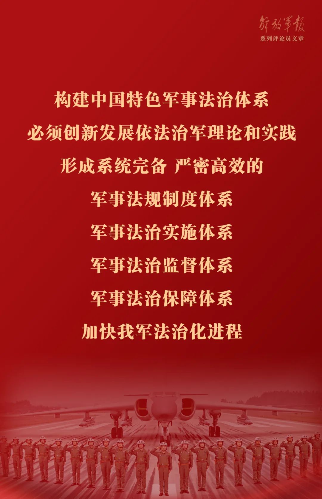 以良法促進發(fā)展、保障善治。構建中國特色軍事法治體系,必須創(chuàng)新發(fā)展依法治軍理論和實踐,形成系統(tǒng)完備、嚴密高效的軍事法規(guī)制度體系、軍事法治實施體系、軍事法治監(jiān)督體系、軍事法治保障體系,加快我軍法治化進程。