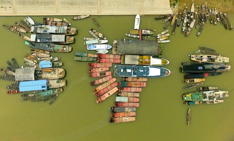 這是2019年12月17日在湖南常德漢壽縣蔣家嘴鎮(zhèn)拍攝的?吭诙赐ズ叺臐O船(無人機(jī)照片)。2020年1月1日零時(shí)起,長(zhǎng)江流域332個(gè)自然保護(hù)區(qū)和水產(chǎn)種質(zhì)資源保護(hù)區(qū)全面禁止生產(chǎn)性捕撈。長(zhǎng)江流域各地重點(diǎn)水域也相繼進(jìn)入為期十年的常年禁捕期。