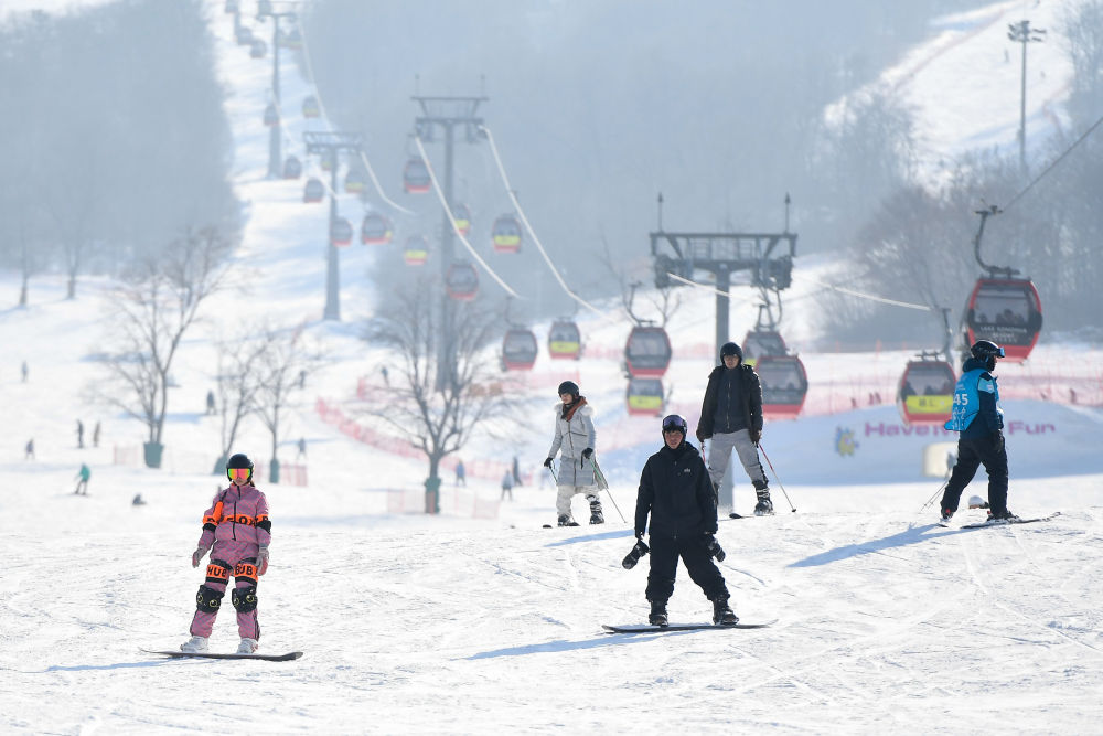 2月11日,滑雪愛好者在吉林市萬科松花湖度假區(qū)滑雪。新華社記者張楠 攝
