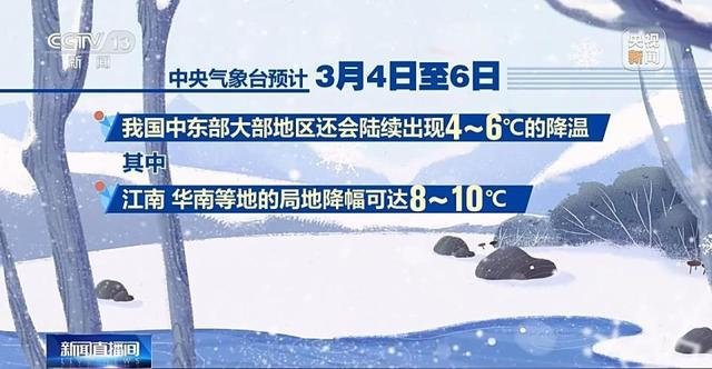 中央氣象臺(tái)預(yù)計(jì),隨著新一股冷空氣的到來(lái),3月4日至6日,我國(guó)中東部大部地區(qū)還會(huì)陸續(xù)出現(xiàn)4~6℃的降溫,其中,江南、華南等地的局地降幅可達(dá)8℃~10℃。建議公眾密切留意臨近預(yù)報(bào),根據(jù)天氣變化合理增減衣物,謹(jǐn)防感冒。(央視新聞客戶(hù)端)